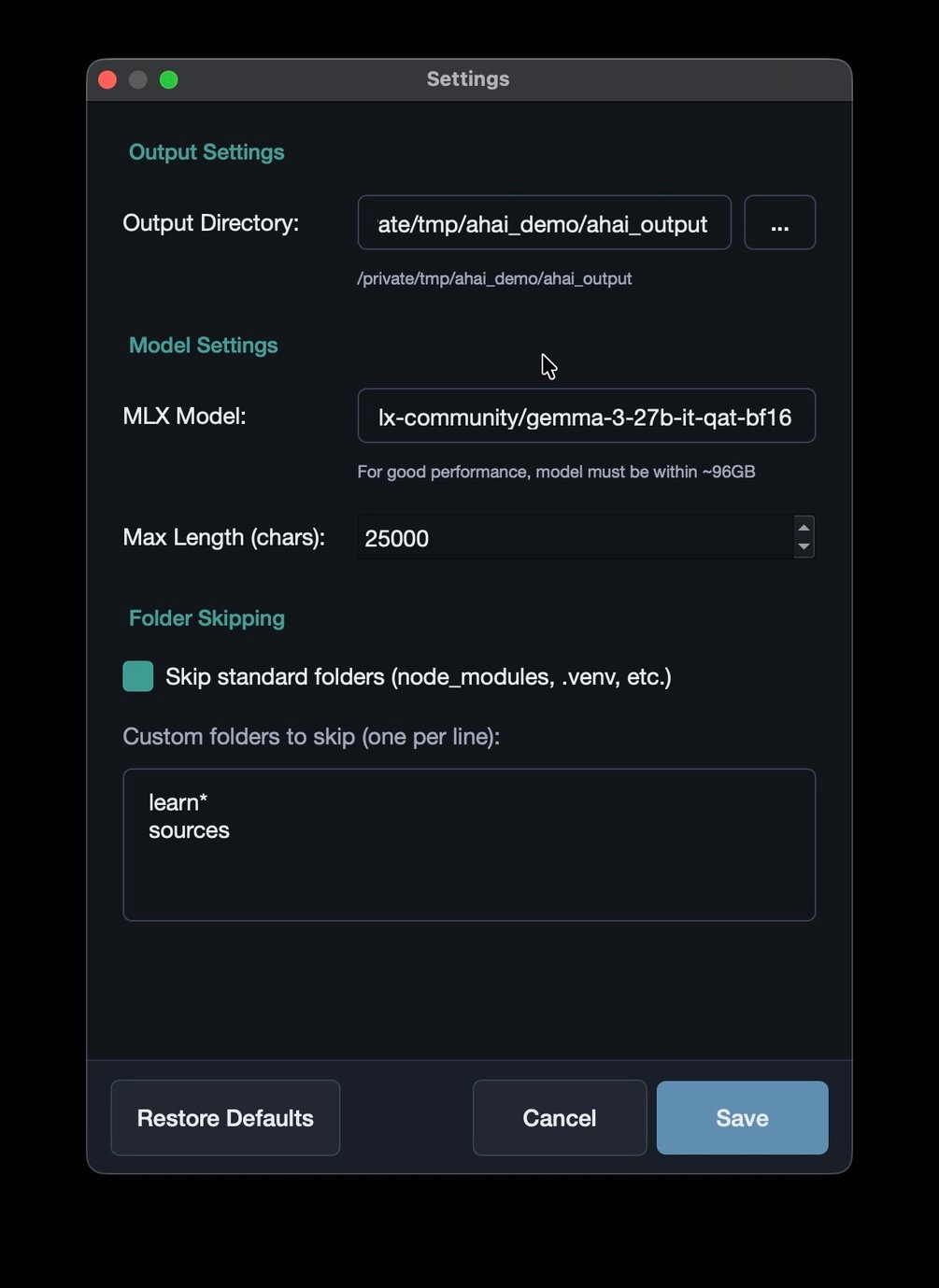 - Model flexibility — works with any mlx_lm compatible model that fits on your machine (downloads to your configured Hugging Face cache). We download a sensible default, or pick your own.