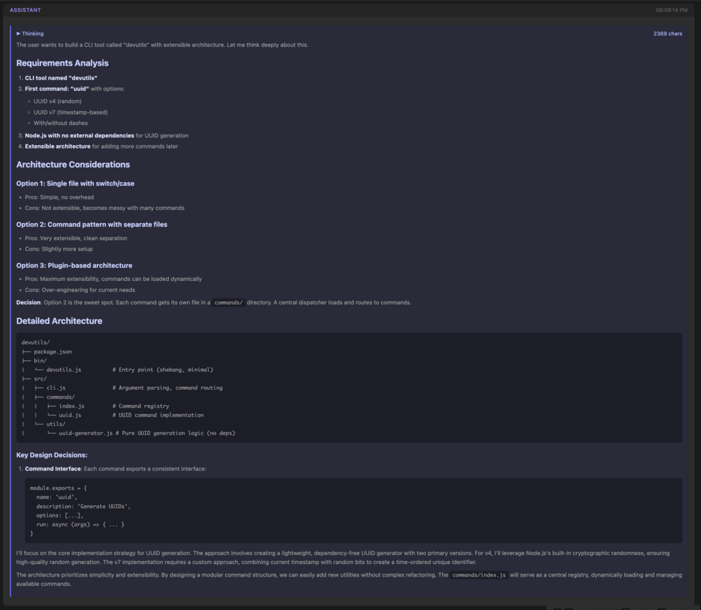 - See Claude's thinking - Expand thinking blocks to understand the reasoning